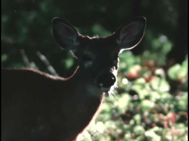 As the day comes to an end deer graze on a hillside, wild turkeys pass through a grassy field, and the full moon rises.