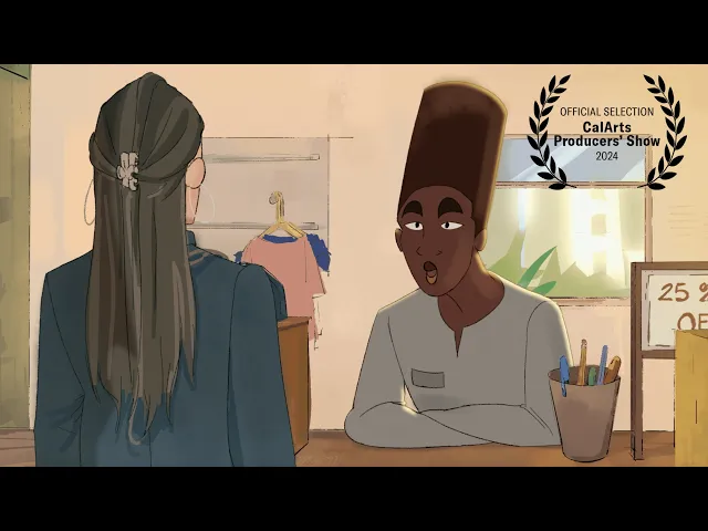 A cashier at store reconsiders his perspective on the importance of clothing after meeting special customers.