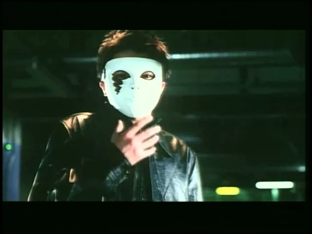 Into the bully-infested home room class struts a fearless, ceramic-masked student. Squarely confronting a gang of ruffians, it is soon discovered that behind the mask is none other than Danta, an otherwise weakling student who has heretofore been picked on relentlessly by these same bullies. Donned with his mask, however, Danta exhibits a totally other personality, lacking fear and intimidation. The other students, looking on, soon experiment with the power of masks and find to their glee that behind a facade of anonymity, they experience an overwhelming power to act without the confines of self-consciousness.